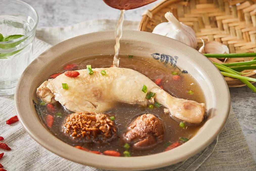 食材:猴頭菇1朵、雞肉半隻、紅棗、枸杞、薑片、食鹽、料酒、清水