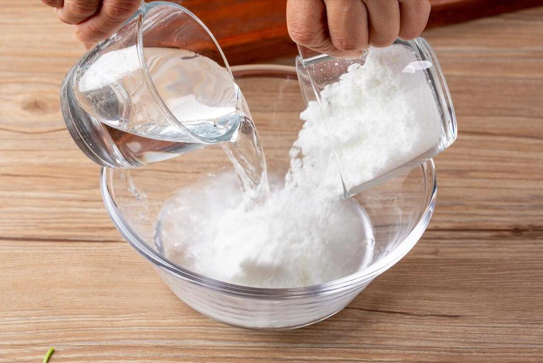 4、趁着燒水的功夫,我們還需要再來準備1樣東西,也是最重要的1味料——澱粉水。來1勺澱粉、半碗清水,將其充分攪拌均勻。等到鍋內的水沸騰以後,咱們就可以把澱粉水倒進去了。