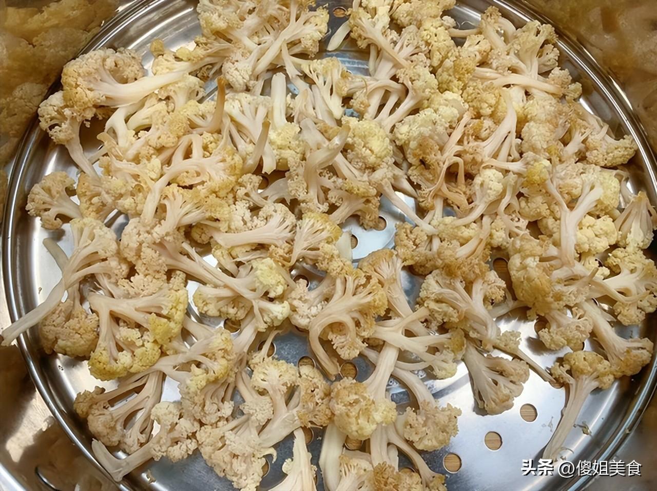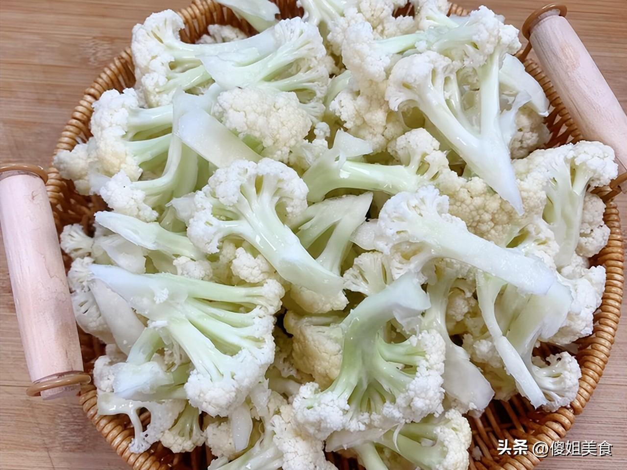 步驟:1、通常選擇顏色潔白、紅緊實、無黑斑的花菜。如果加上嫩綠的葉子,別扔掉,曬乾後更香。將花菜加重小朵,放入淡鹽水中浸泡15分鐘,除去殘留的泥沙和小蟲子。用清水沖洗乾淨後瀝乾。