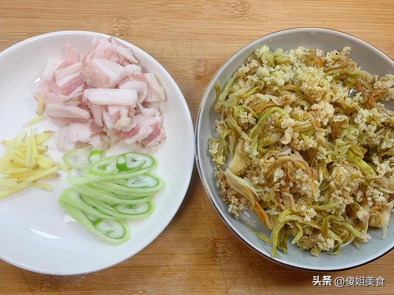 曬好的花菜乾,最經典的做法莫過於和五花肉一起炒。軟嫩的花菜乾吸飽了五花肉的香味下面,每一口都讓人滿足。就分享這道菜的詳細做法: