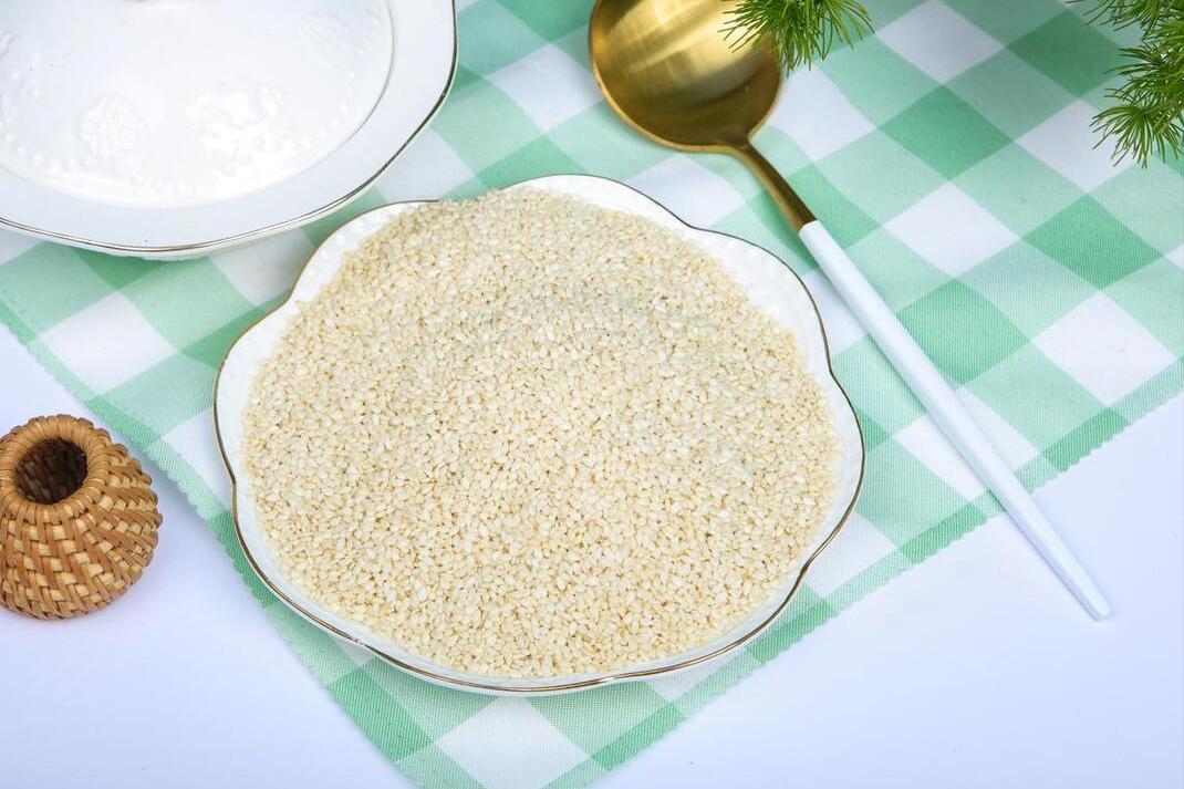 1、首先準備一些白芝麻,稍微挑揀一下,把裏面的髒東西去掉,接下來倒在水中進行清洗,洗淨後將水分控幹,然後再將其放到通風處晾上一會兒,直至把水分晾乾,或者直接用廚房紙擦乾。