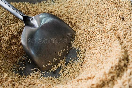 2、買芝麻的時候最好買熟的,這樣就可以直接拿來用了,如果是生的白芝麻,那麼這個時候我們還需要下鍋炒一下。把芝麻倒進去,小火翻炒一陣子,直至顏色發黃,並且發出一些爆裂的聲音後,就可以關火了,盛出來備用。