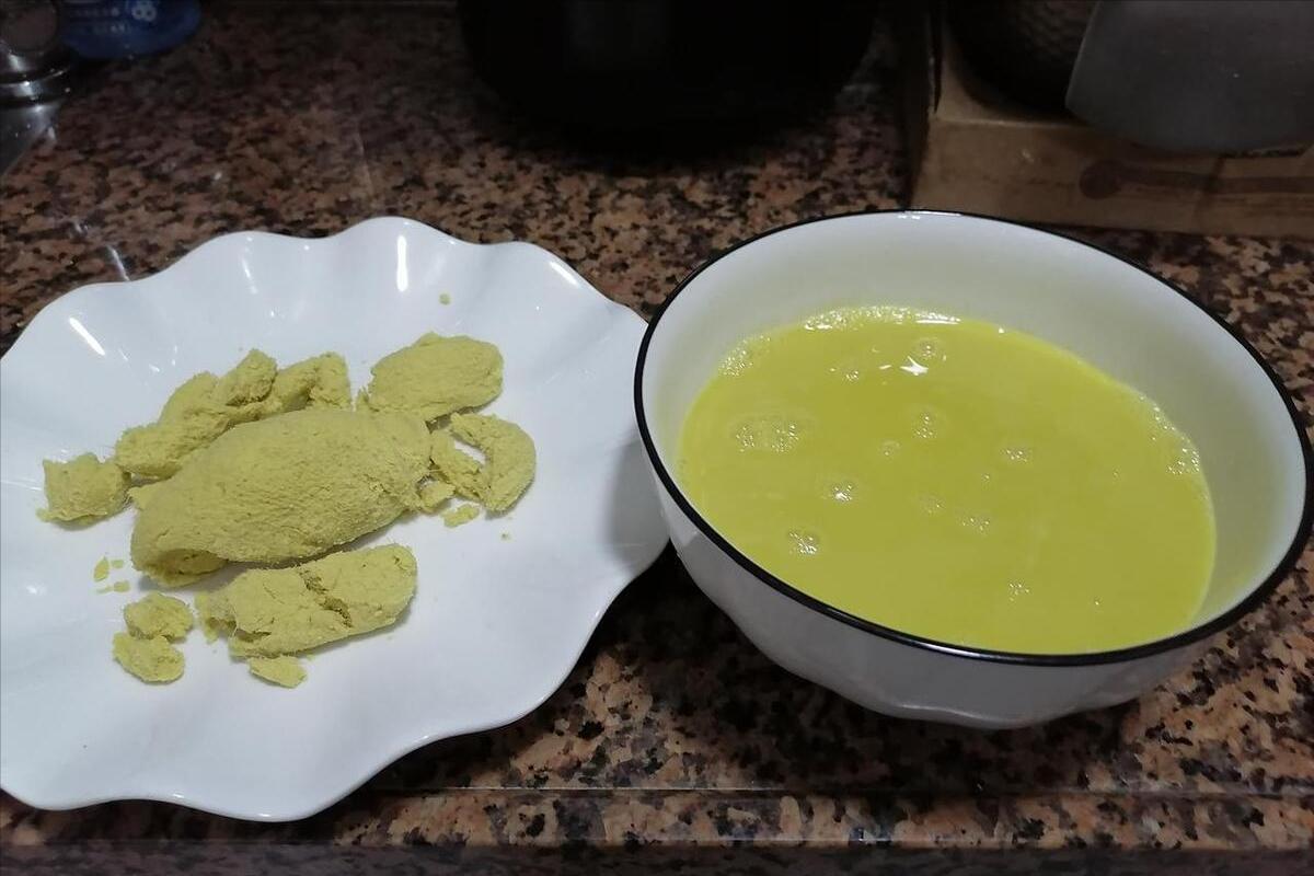 5、加熱好以後,直接將其倒入薑汁中,倒的時候需要從高處快速衝進去,倒進去以後不要攪動,放在一旁就不用管了,差不多等待10分鐘的時間,觀察一下狀態,這個時候已經變成固體的狀態了,趁熱享用吧,香香甜甜,軟糯如布丁。