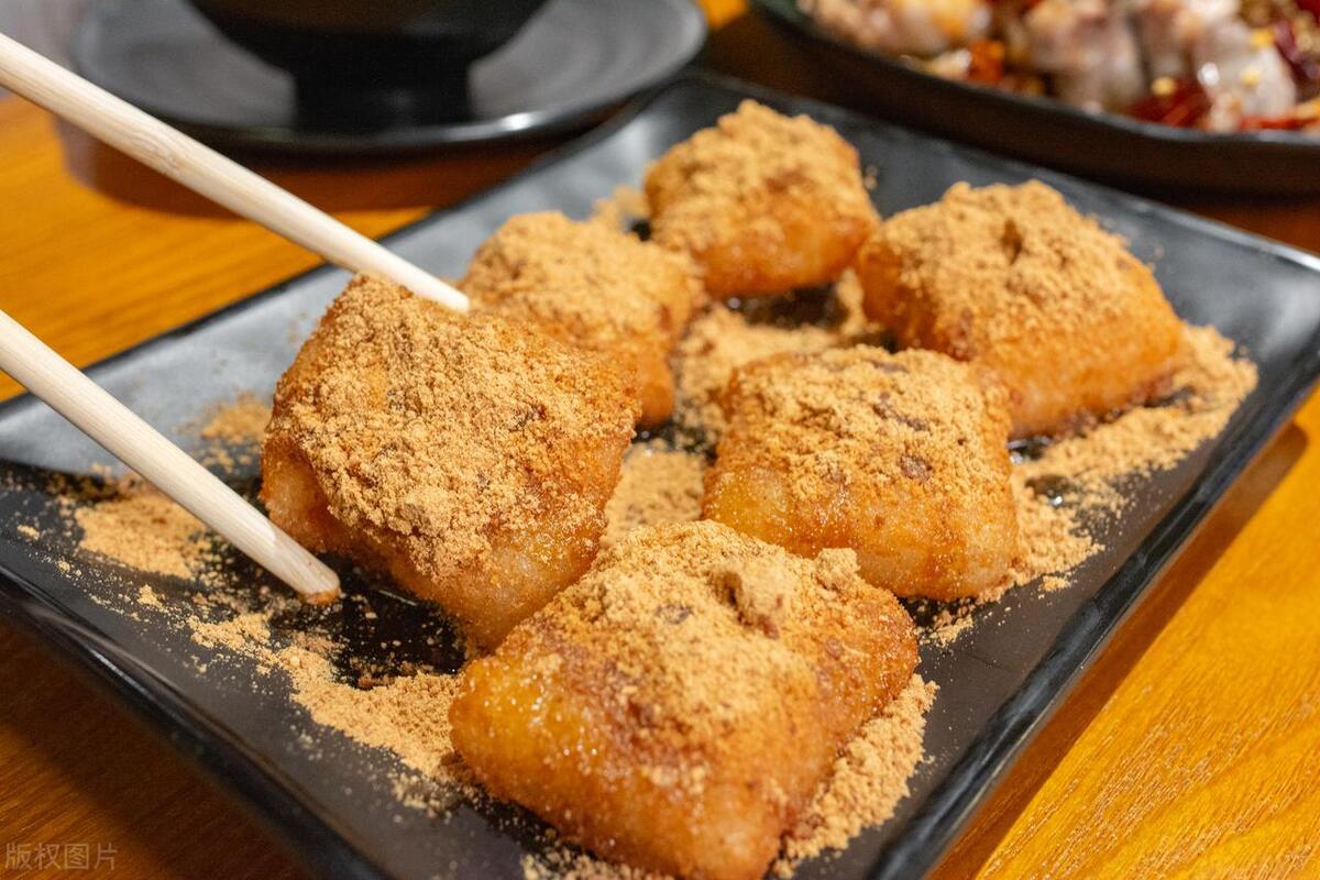 - 操作步驟:鍋中加入少許清水,放入紅糖,小火慢慢熬煮,至紅糖完全融化,熬成濃稠的紅糖水。餈粑放入平底鍋中,小火煎至兩面金黃,表面微微鼓起。將煎好的餈粑盛出,放入盤中,淋上熬好的紅糖水,撒上黃豆粉即可。