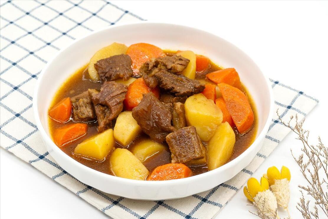 2、接下來牛肉焯水,盛出來備用,往鍋中倒油,下入西紅柿翻炒片刻,再把牛肉倒進去,繼續炒一會兒,放入蔥姜炒香,然後添上足量的開水,接下來用冰糖、生抽、老抽調味,燉上40分鐘後,將土豆、胡蘿蔔放進去,再燉20分鐘,最後用鹽、味精調味,關火出鍋。