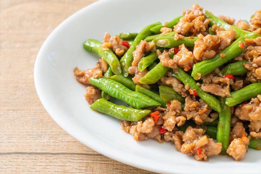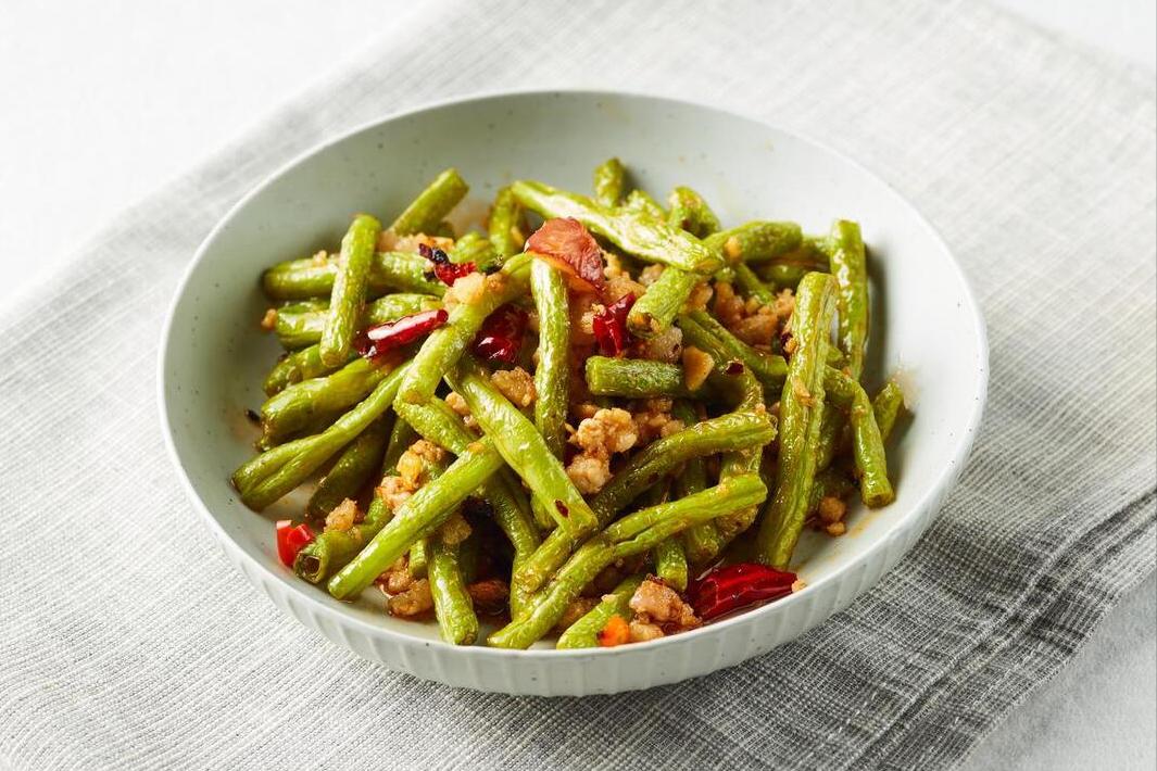 用到:四季豆、豬肉、蔥薑蒜、鹽、味精、白糖、生抽、蠔油、老抽、料酒、白胡椒粉、澱粉、食用油