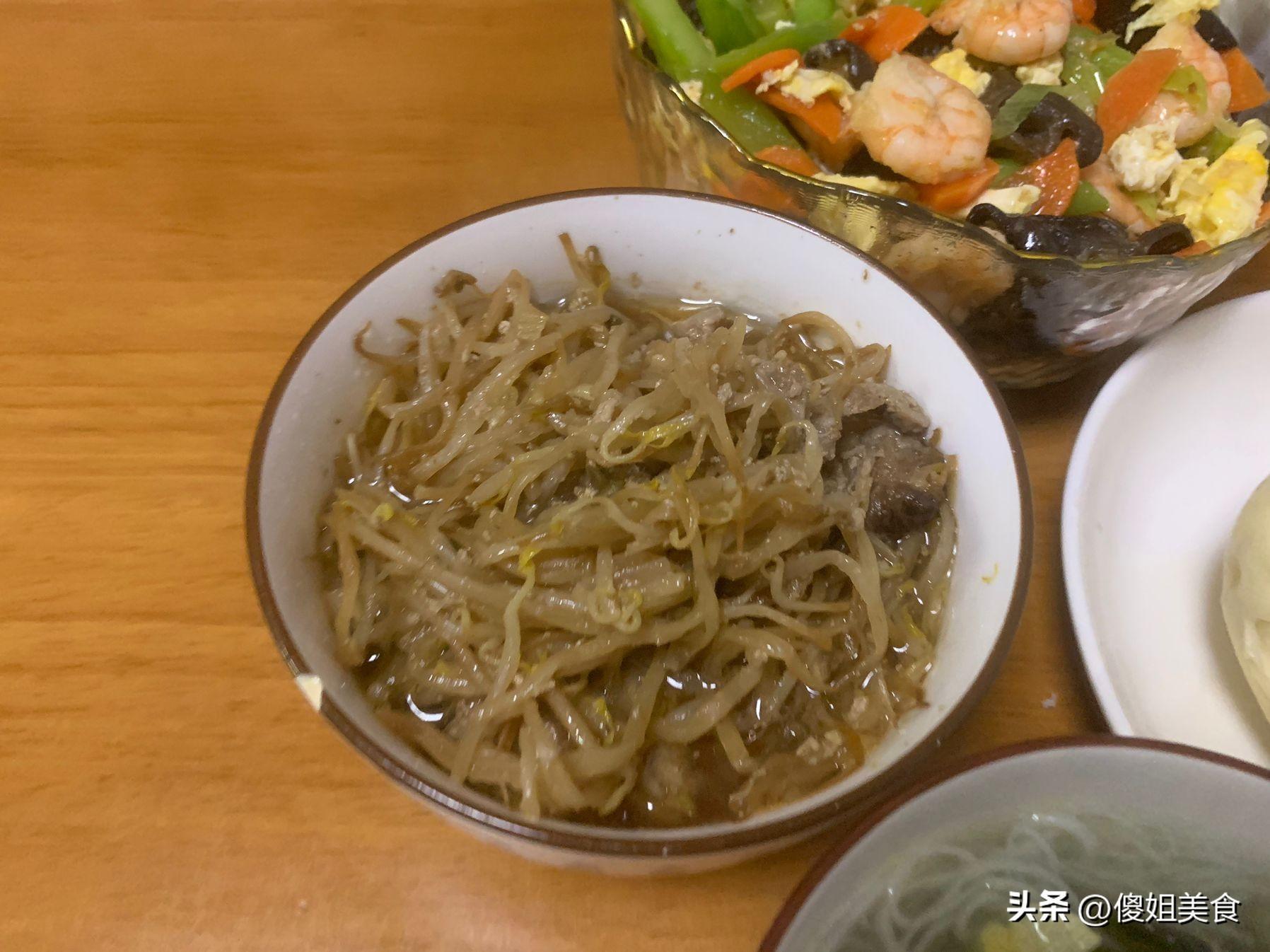 看到這個綠豆芽是不是很沒有食慾?不瞞大家說,這個菜還是中午在快餐店打包回來的,是牛肉炒黃豆芽,沒喫多少就沒捨得丟掉,打包帶回來了,但是快餐店的飯菜總不如家裏做的,油比較大。