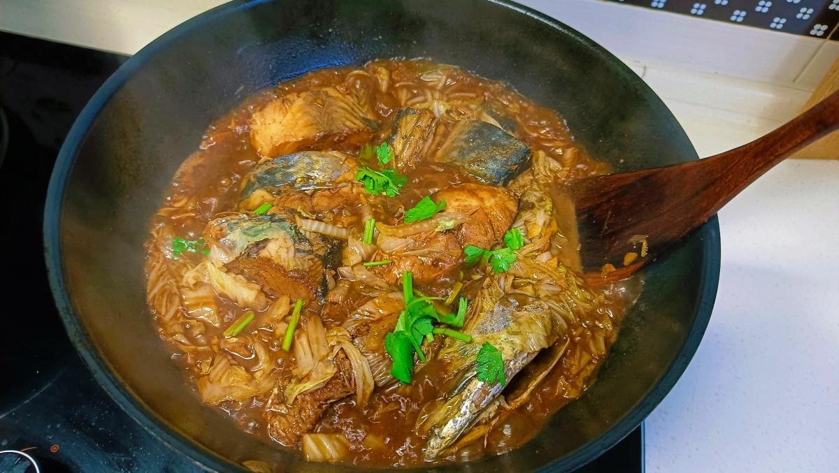 5.燉至白菜軟爛,湯汁濃稠後關火,出鍋前撒上一把香菜段提鮮,美味即成!一道鮮美好喫的鮁魚燉白菜就做好了,熱熱乎乎的,特適合這寒冷的冬天~