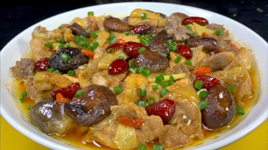 - 將雞肉塊放入碗中,加入冬菇片、薑絲、蒜末、鹽、生抽、蠔油、料酒、澱粉、胡椒粉、食用油和紅棗絲,攪拌均勻,醃製 20 - 30 分鐘。