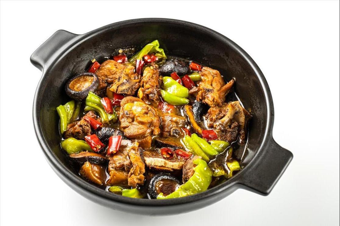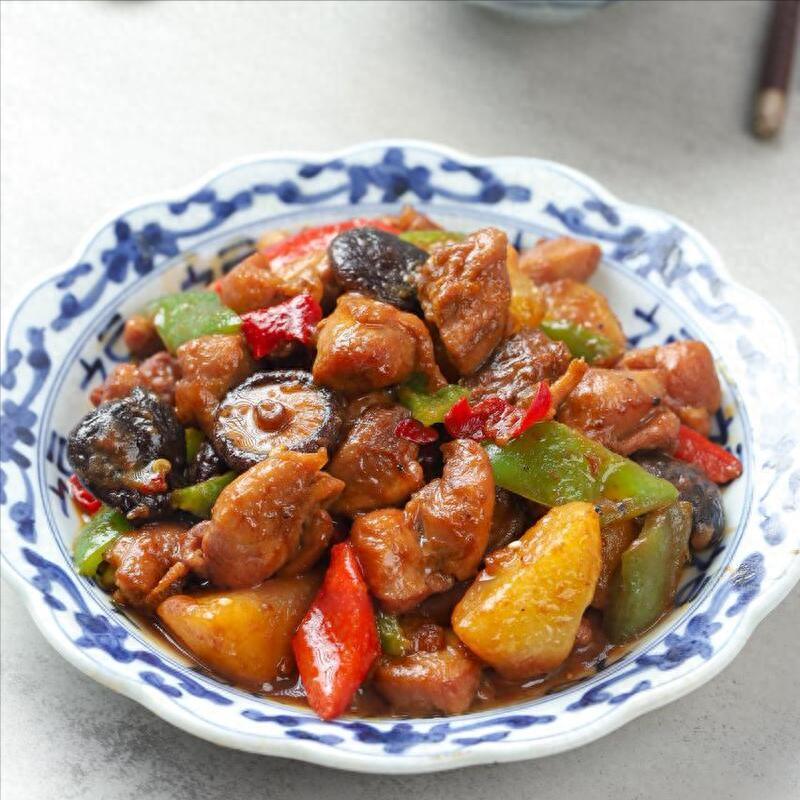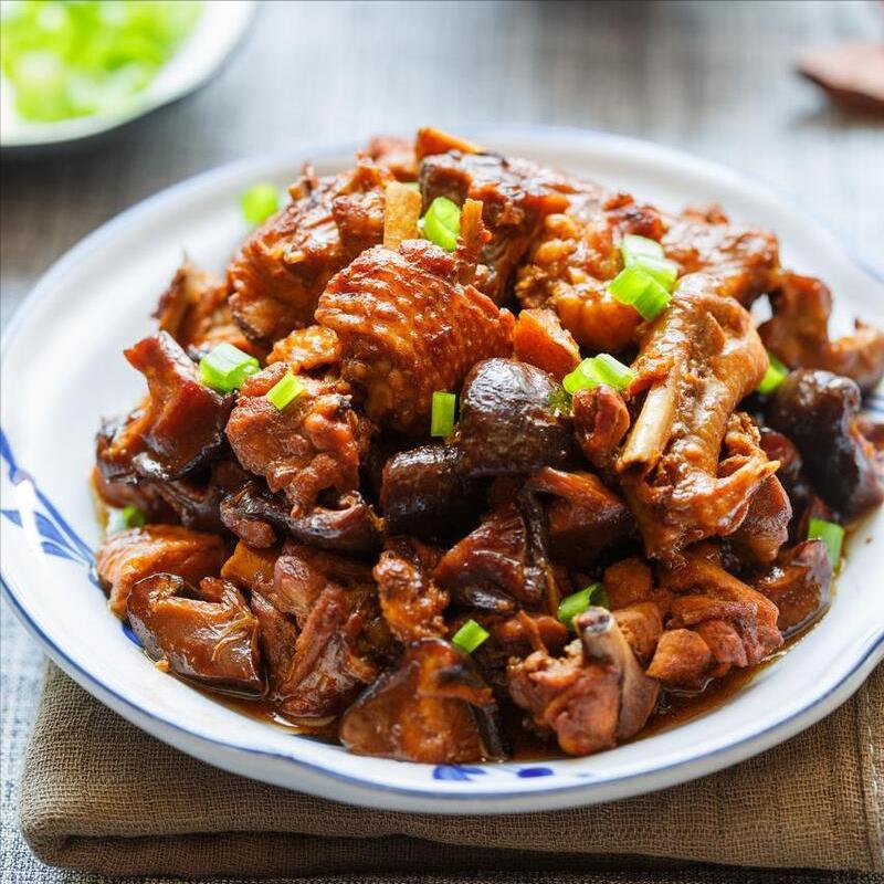 用到:香菇、青辣椒、雞肉、蔥姜、八角、鹽、味精、冰糖、料酒、生抽、老抽、蠔油、食用油
