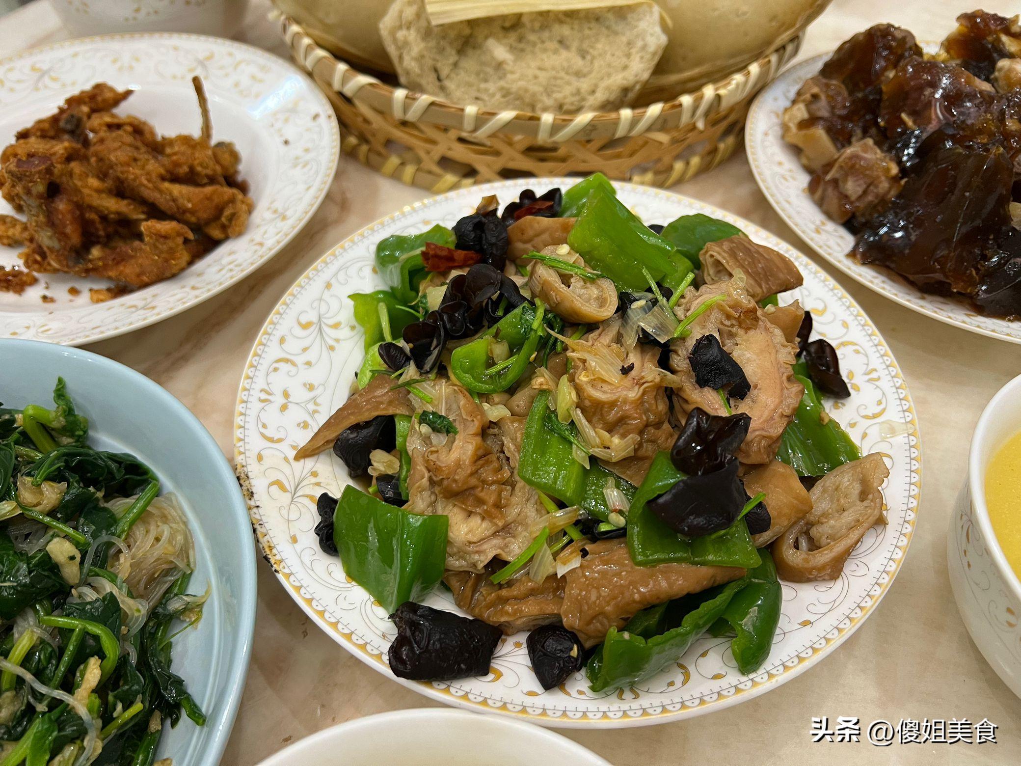 我們一家五口聚在一起,我親自下廚做了一桌菜。說起來,我做的菜不多,就三個,可每一道都是我精心準備的。第一道是青椒炒肥腸,這道菜可是有講究的。先把肥腸處理乾淨,用醋和麪粉反覆搓洗,然後切成小段。青椒切成小塊,準備點蔥薑蒜爆香。鍋裏倒油,先把肥腸煸炒一下,炒到微微焦黃,盛出來備用。再重新起鍋,蔥薑蒜爆香後放入青椒翻炒,炒到斷生,把肥腸倒進去,加上生抽、老抽、鹽、雞精調味,大火翻炒均勻就出鍋啦。這道菜那叫一個香,肥腸的軟糯和青椒的清脆完美結合,口感特別棒!