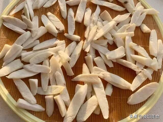 【曬山藥幹】具體步驟:1、將山藥表皮刮淨,注意戴手套避免黏液刺激皮膚,接着切成均勻的薄片或條狀,厚度約3-5毫米。2、鍋中加水,加勺鹽,倒入山藥焯水,撈出控幹水分,放在蓋簾上陽光下晾曬3-5天,至完全乾透。3、曬好的山藥幹裝入乾燥的密封容器中,置於陰涼乾燥處存放。山藥幹食用時泡發,即可煮湯或蒸煮。