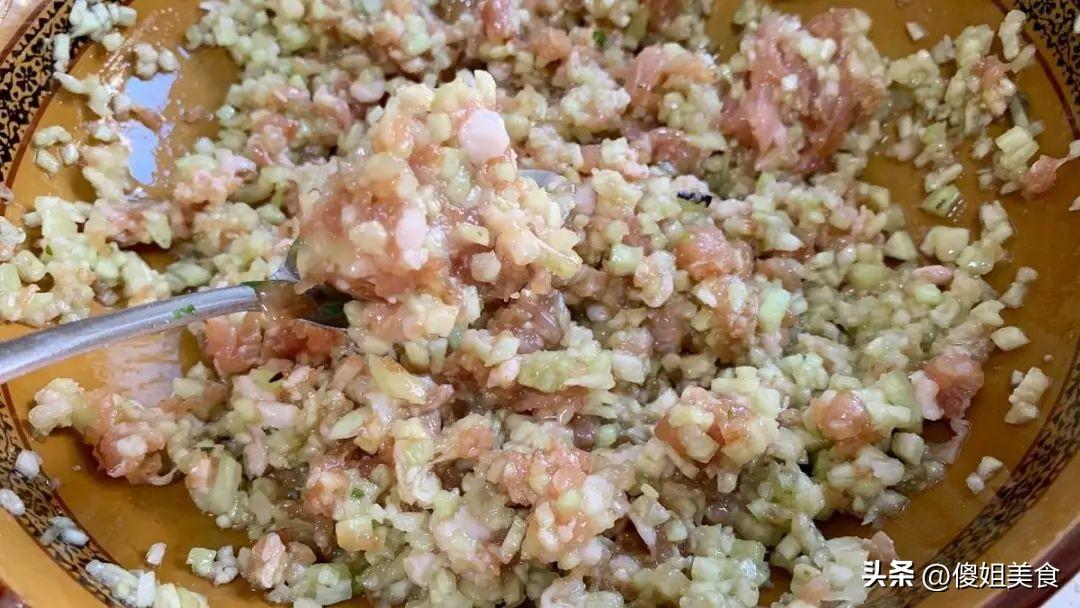 處理豬肉:將豬肉剁成肉餡,放入碗中,加入適量的蔥薑末、醬油、蠔油和鹽,攪拌均勻備用。處理茄子:浸泡後的茄子絲瀝乾水分,用手輕輕擠幹多餘的水分,然後將茄子絲與調好的豬肉餡混合在一起,攪拌均勻。這裏有個小技巧,爲了讓茄子餡在煮熟後不發黑,可以在拌餡時加入少許食用油,這樣可以鎖住茄子的顏色。