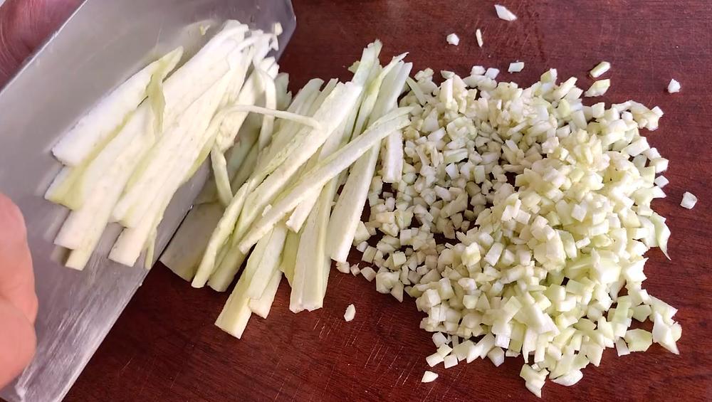 既然茄子這麼好,那用它來包餃子再合適不過了。接下來,我就分享一下茄子豬肉餃子的做法,以及如何讓茄子餡在煮熟後不發黑的小技巧。準備茄子:將茄子洗淨,帶皮切成細絲。茄子切絲後容易氧化變黑,所以切好後放入鹽水中浸泡5分鐘,這樣可以防止茄子變黑,同時也能讓茄子出水。
