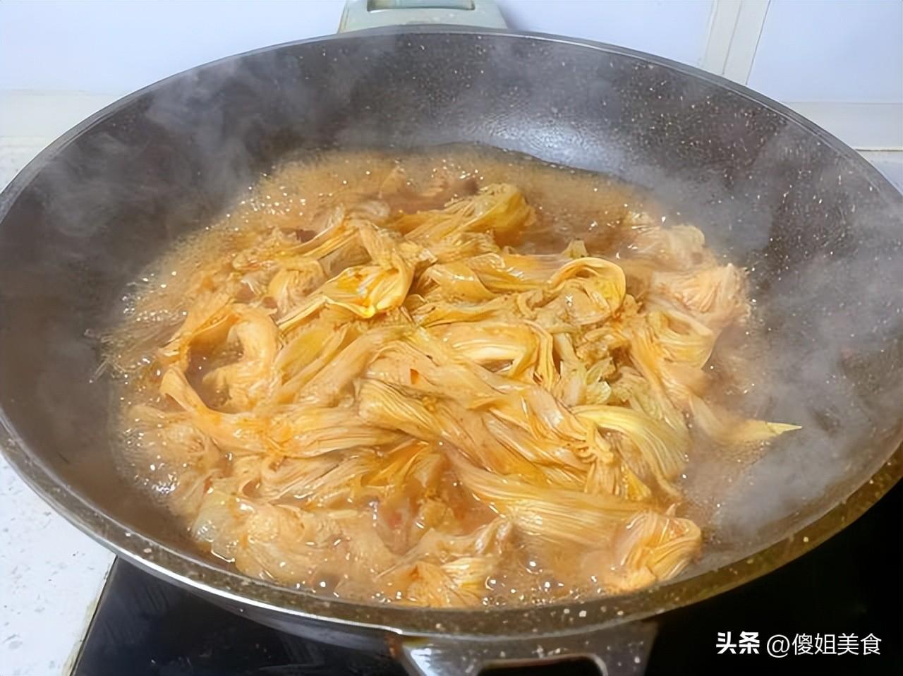 3、然後加入白菜乾,稍加翻炒,讓白菜乾吸收肉香和調料味道,倒入適量清水或高湯,大火燒開後轉小火,放入粉條,燉煮30分鐘,讓白菜乾充分入味,粉條吸滿湯汁,變得柔軟。根據口味加鹽調味,再燉1分鐘即可關火,出鍋後撒點香蔥點綴。