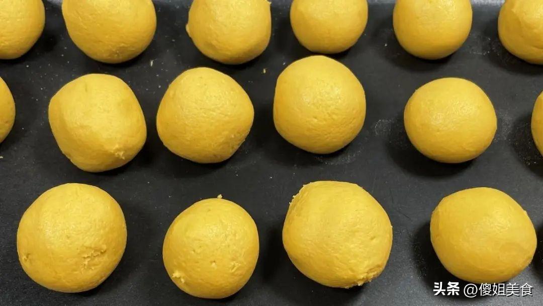 2、製作糯米丸子:將糯米粉倒入南瓜泥中,攪拌均勻,直到形成一個柔軟的麪糰。然後將麪糰分成小塊,用手搓成一個個小丸子。大小可以根據自己的喜好來定,大約核桃大小即可。