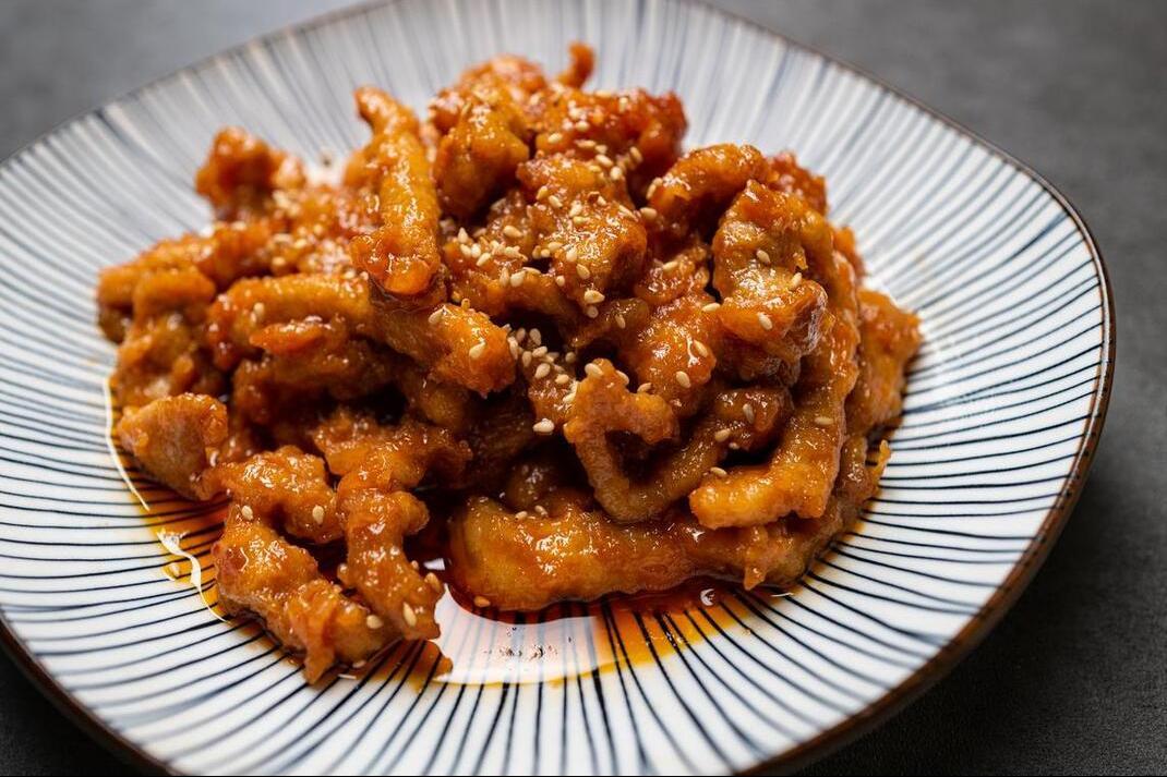 4、直至炒到黏稠之後,我們接着把炸好的裏脊肉倒進去,繼續翻炒片刻,直至徹底炒勻以後,撒上點白芝麻或者小蔥花,就可以出鍋開喫啦,酸酸甜甜,太開胃太下飯!