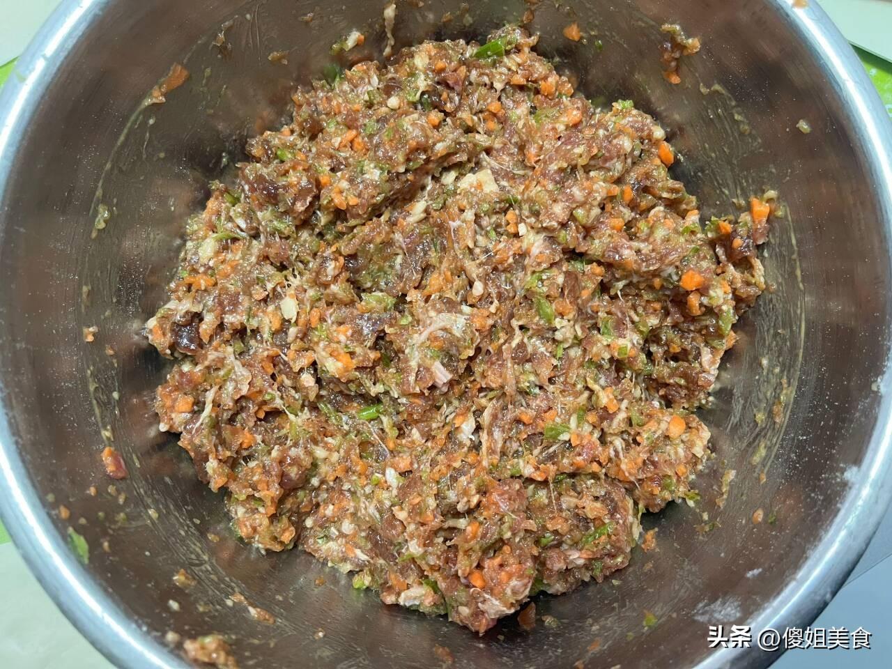 婆婆愛喫牛肉,平時自己也捨不得買,這段時間牛肉便宜了很多,買了100塊錢的,放在冰箱裏隨喫隨取。中午包了牛肉芹菜餡餃子,調牛肉餡很關鍵,一定要用蔥姜、花椒水調,把肉餡調的軟軟的,讓煮熟的餃子爆汁好喫。調好的牛肉餡內放了一些芹菜碎和胡蘿蔔素,放勺食用油、蠔油、味極鮮、香油和鹽不停的攪拌均勻。最後把包好的餃子放入沸騰的開水鍋內煮,餃子煮鼓起撈出來瀝乾水分,鮮嫩好喫的牛肉芹菜餡餃子就煮好了,再就着大蒜喫,一口一個滿嘴爆汁,太香了。