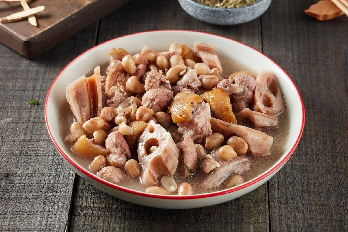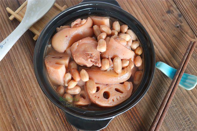 豬蹄肉質鮮嫩,含有豐富的膠原蛋白,能夠爲皮膚提供充足的營養。蓮藕滋陰潤肺,補血養顏。花生好似長壽食物。