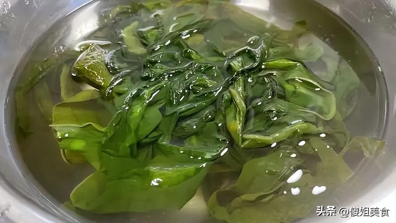 - 處理裙帶菜:首先,將幹裙帶菜用清水泡發,大約需要15分鐘。泡發好的裙帶菜用清水沖洗幾遍,確保去掉表面的鹽分,然後切成小段備用。