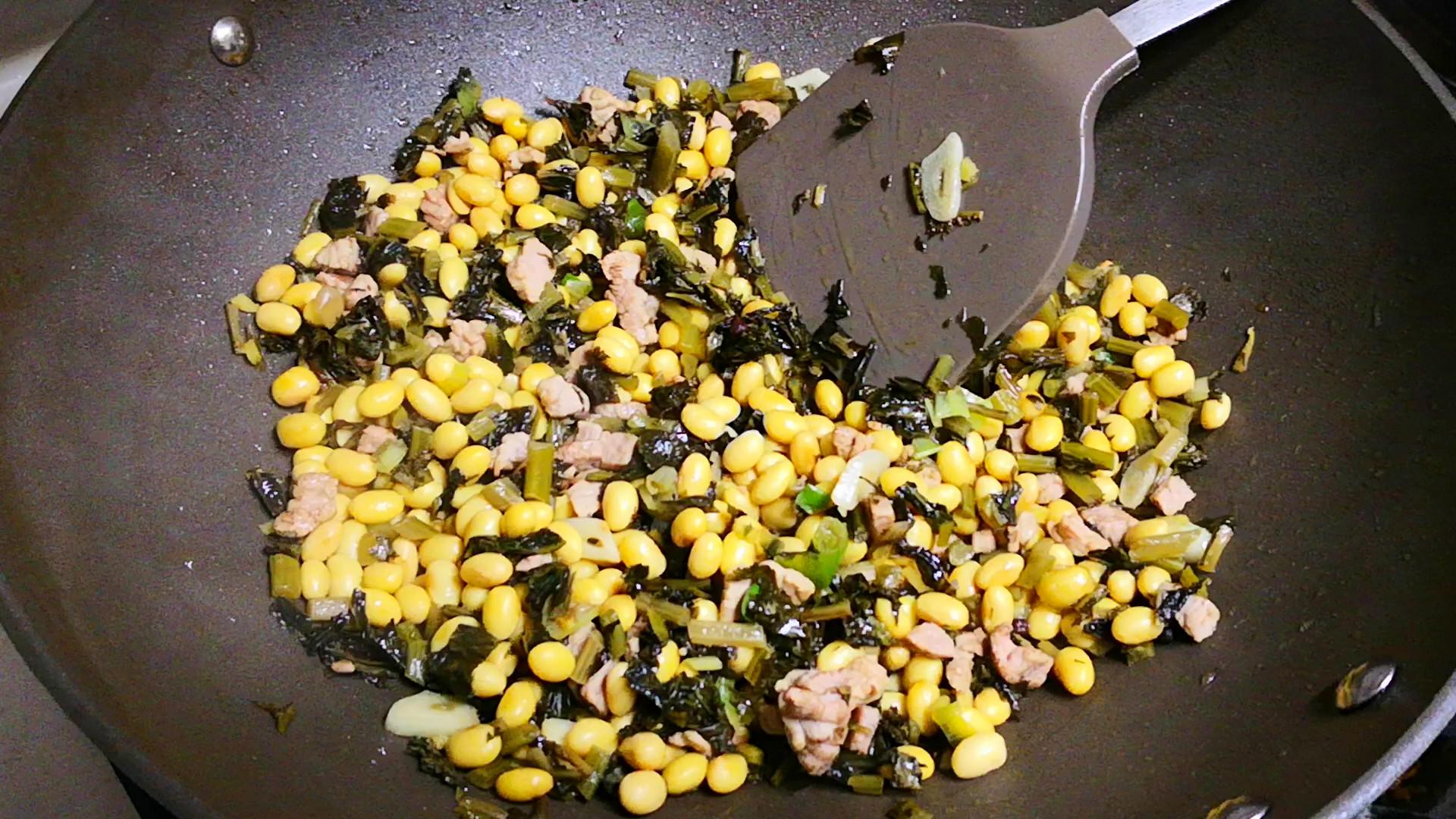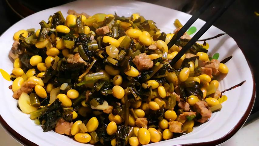雪裏紅炒黃豆做法:
