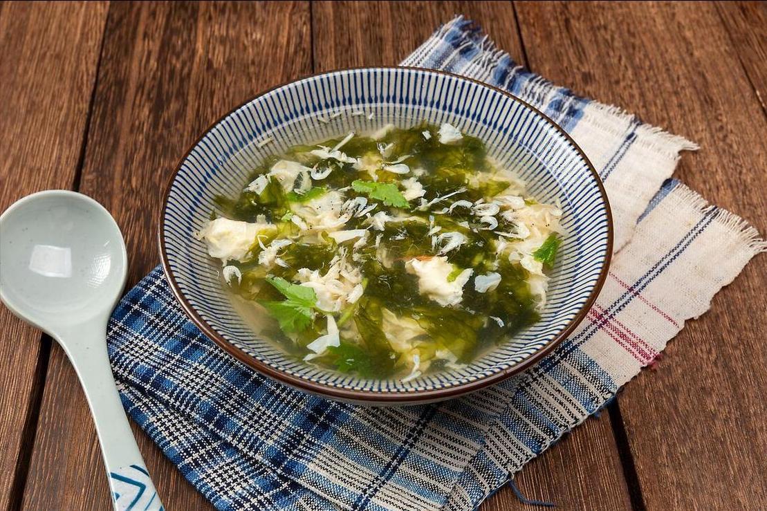 蝦皮和紫菜都盛在一個大碗裏,雞蛋倒在小碗中打散,隨後鍋中倒水,燒開以後下入蛋液,煮到蛋液凝固後放上鹽、白胡椒粉、雞精調味,然後趁熱將其倒入紫菜和蝦皮中,最後滴入幾滴香油,盛出來開喝。