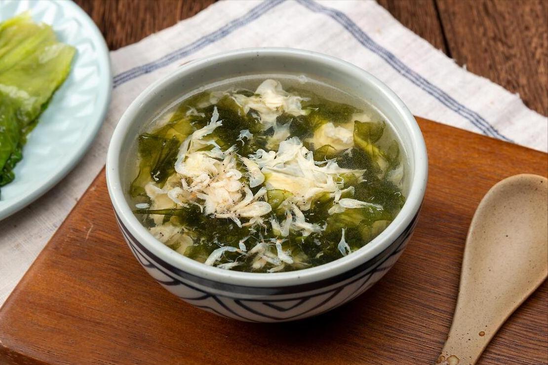 準備:蝦皮、紫菜、雞蛋、鹽、白胡椒粉、雞精、香油