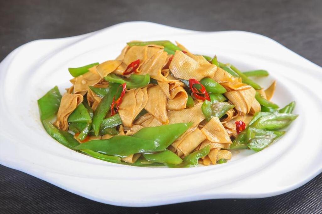 青辣椒切塊,豆腐皮切塊,大蒜切末,鍋中來點清水燒開後,把豆腐皮下進去煮一下,焯水後撈出來。隨後起鍋燒油,下入蒜末爆香,接着倒入豆腐皮翻炒,炒軟後下入青辣椒,然後用醬油、蠔油、鹽、雞精調味,最後淋入半碗水澱粉勾芡,煮到濃郁後出鍋。