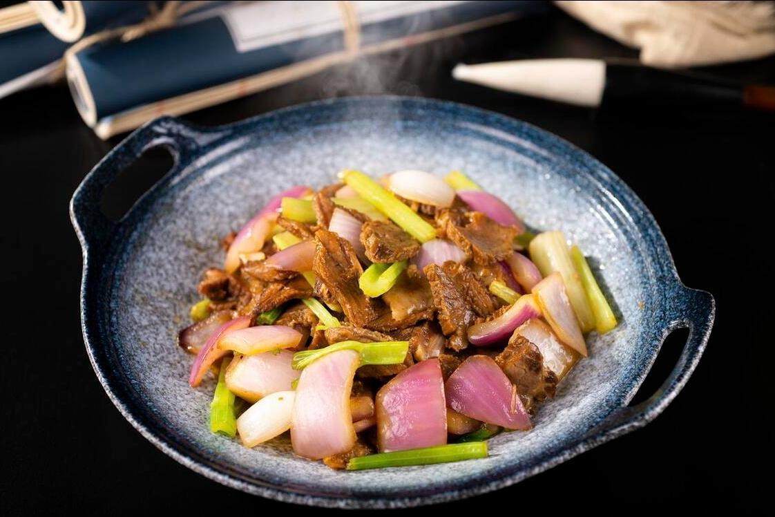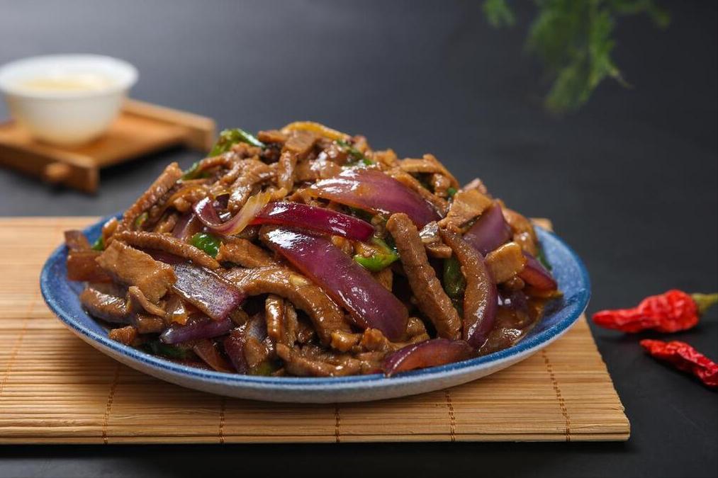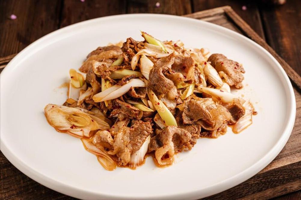 2、鍋中倒油燒熱後,下入牛肉翻炒至斷生,然後盛出來,接下來炒香洋蔥、小米椒,之後重新倒入牛肉,加上適量的鹽、味精、生抽、孜然粉調味,最後還可以來點孜然粒增香,炒勻後出鍋開喫。