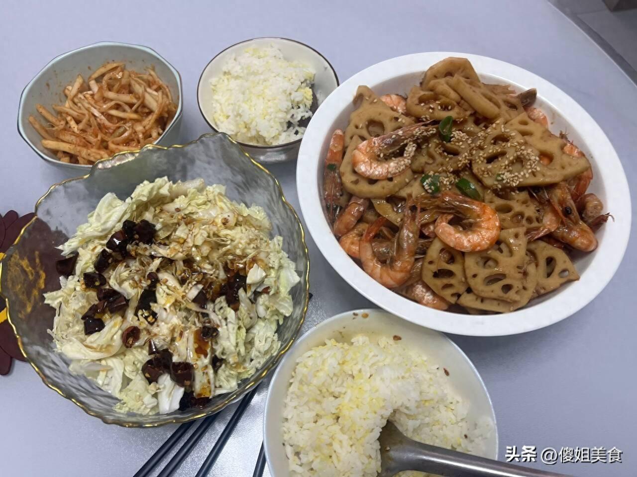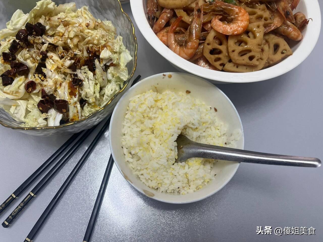 買完趕忙去上班,我上班比較自由,八點之前到了就可以,而且中午到孩子放學點去接孩子就行。中午載滿滿的兩大袋子白菜、地瓜去學校門口接孩子,其他家長還以爲我要擺攤賣呢,哈哈。 孩子接回來先把買回來的大白菜、地瓜放好,地瓜需要把表面的泥土及水分晾曬乾,大概曬1-2天后放在紙箱保存就可以了,地瓜不容易爛。大白菜把爛掉的葉子扔掉,放在陰涼透風地方存放。忙完緊忙做我們娘倆的午餐飯,15分鐘就搞定了午飯,曬了下朋友圈火了,網友:這會喫,看着就香!下面把我們母子二人的午餐也讓大家看看,是不是很香。