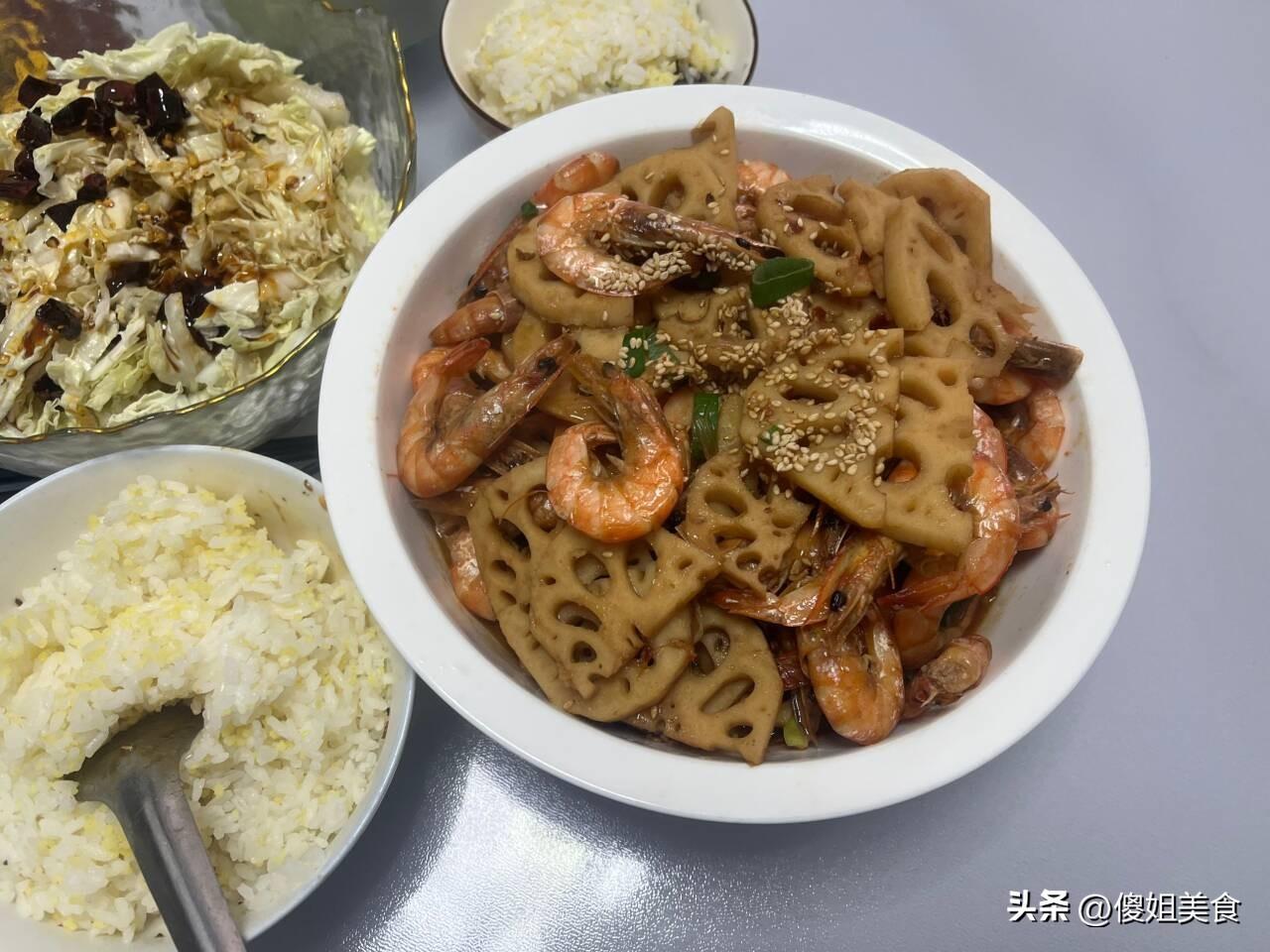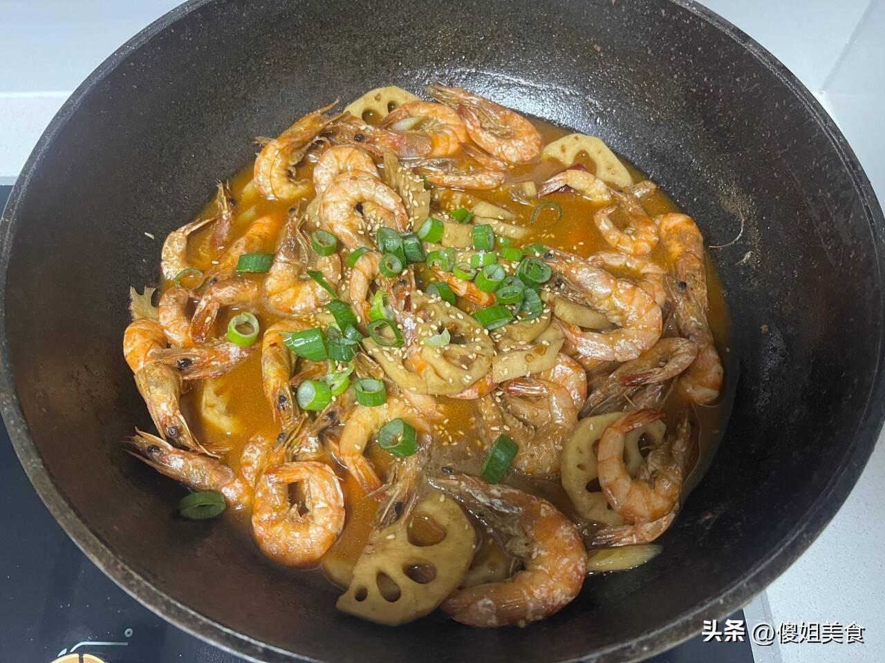 每天中午也不知道喫啥,兒子喜歡喫辣,我就做了個家庭版的王婆大蝦。前幾天大蝦便宜買了一些存放在冰箱了,嘴饞的時候喫正好。大蝦處理乾淨瀝乾水分,放在油鍋裏炸一下,土豆條也炸成薯條,炸熟透就可以了。最後起鍋燒油放一塊火鍋底料炒香,把大蝦、藕片都放進去,加入適量的清水、味極鮮、鹽燉10分鐘,最後燉熟倒入土豆條內,撒上白芝麻、香蔥就可以喫了,鮮香麻辣好喫又下飯,這一大盆成本不到20塊錢,好喫又下飯。
