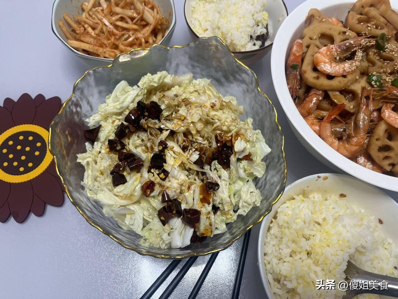 收拾白菜的時候專門挑了一個白菜心,記得小時候爸爸經常涼拌白菜心喫,白菜心清涼爽口,清脆又好喫。洗乾淨的白菜心切成細絲,放2勺陳醋、1勺味極鮮、辣椒油、香油和鹽拌一下,比大魚大肉還好喫,我就好喫這道開胃菜,便宜又營養。