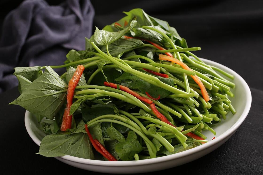 用到:大蒜、紅薯葉、小米椒、食鹽、味精、食用油