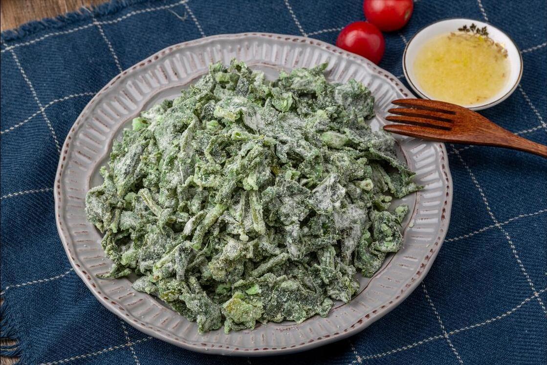 1、首先咱們把紅薯葉給挑揀一下,裏面不好的葉子都得摘掉,隨後將其放入水中進行清洗,多清洗兩遍,洗淨以後把水分完全控幹。
