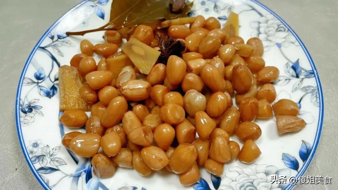 做法步驟:1、將花生米洗淨放入鍋中加水,水量要沒過花生,然後放入大料、香葉、桂皮、蔥段、薑片、鹽、醬油,大火燒開後煮30分鐘左右,將花生米煮熟,打開鍋蓋晾涼。關火後不要着急撈出花生米,多浸泡一會兒,讓其更加入味。