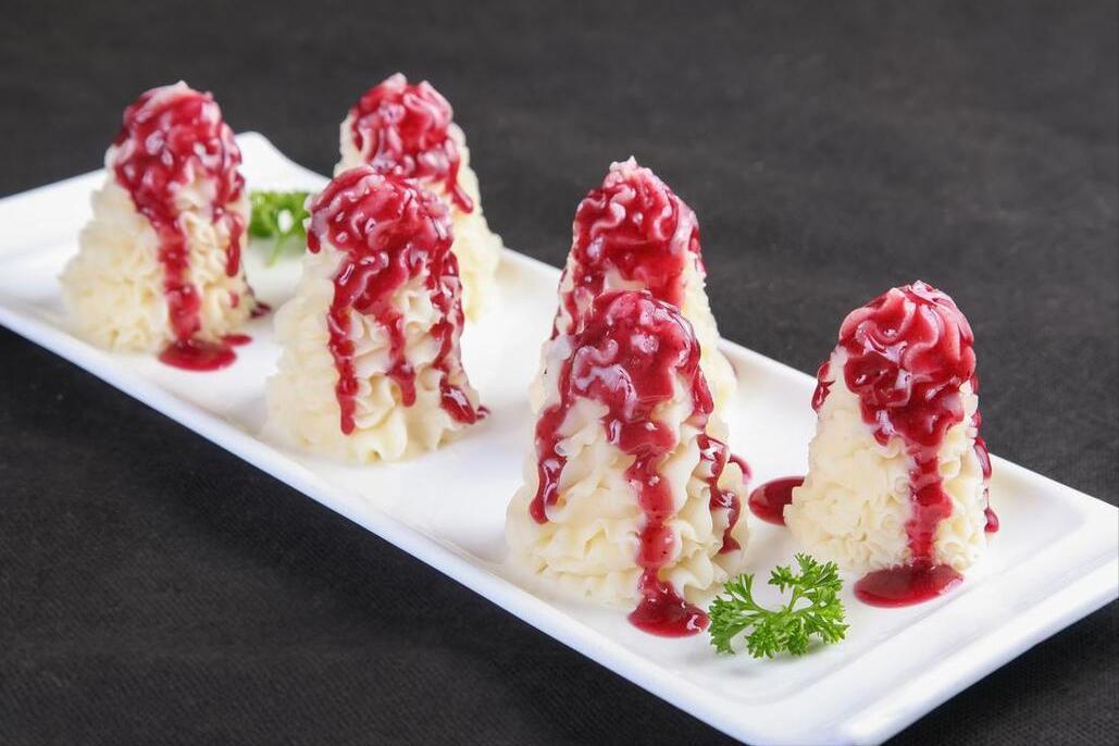 2、把山藥放在小盆裏捻碎,越碎、越細膩越好,之後盛在裱花袋裏,然後擠在盤子中,稍微整理一下,形狀漂亮一點。之後把藍莓醬準備好,往裏面加上少許清水稀釋,然後再把它澆在山藥泥上,我們的藍莓山藥泥也搞定了,這個大人小孩都會喜歡的,趕緊試試看吧!