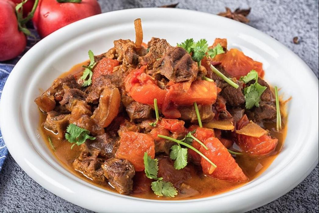 2、接着起鍋燒油,下入蔥姜爆香後,倒入牛肉翻炒,炒到上色後,加上生抽、蠔油、白糖調味,然後添上適量的開水來燉。燉上50分鐘後,把西紅柿加進去,繼續燉20分鐘這樣,最後放入鹽和雞精調味,即可出鍋開喫。