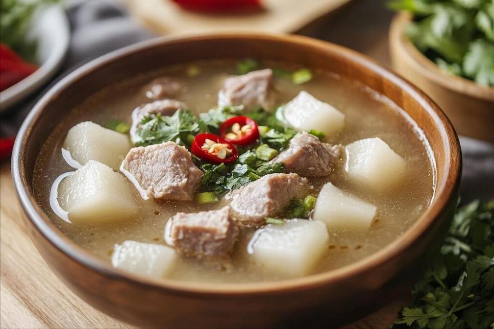 5、隨後再把切好的白蘿蔔倒進去,蘿蔔熟得比較快,大概15——20分鐘的時間就可以了,等到煮好之後我們掀開蓋子,然後往裏面放上適量的鹽調味,想要味道更好還可以稍微來點味精和白胡椒粉,攪拌均勻以後,最後撒上點香菜,就可以盛出來開喫啦。