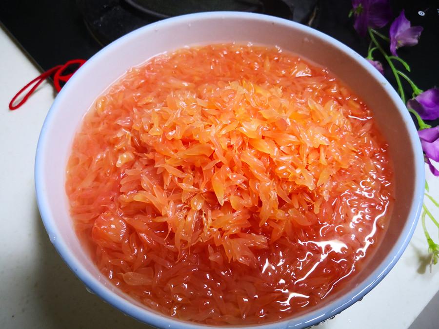 3、接着就很簡單,那就是熬製,將果肉、柚子皮、冰糖和適量的水,一起放入乾淨的鍋中開大火煮一個小時,煮到湯汁金黃透亮即可,湯汁冷卻後,加入蜂蜜,放入冰箱冷藏保存,想喝的時候衝上一杯,真是好喝啊!