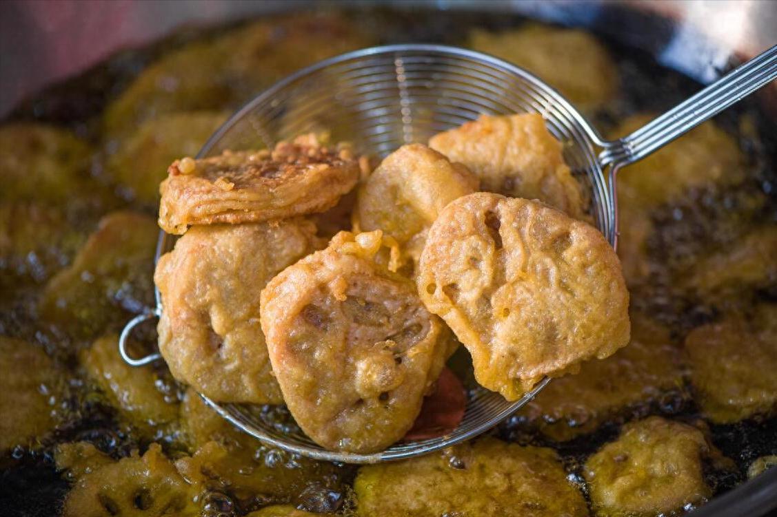 其中我最喜歡的就是炸藕盒,孩子也愛喫,雖然很多人說油炸食品不健康,但也不是天天喫,偶爾來一頓解解饞,也是很過癮的。
