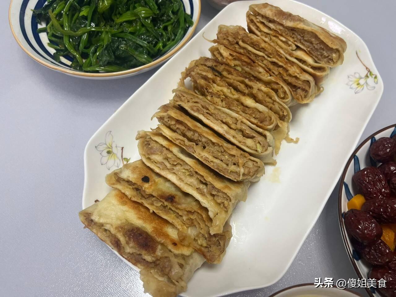 自從結婚後我就愛上了婆婆做的牛肉餅,喫過一次就想天天喫,記得懷孕那會婆婆隔三岔五就會給我做一次,每次我都喫到稱。做牛肉餅的時候提前和一個比較軟的麪糰,醒發一小會。接下來就是調肉餡,牛肉餡裏面倒入提前泡好的花椒水,讓牛肉餡完全吸收,這樣牛肉不僅不腥,菜餡還很軟口感好喫。肉餡內放點白菜碎、鹽、適量味極鮮、蠔油、食用油和香油充分攪均勻。最後把麪糰分成饅頭劑子,擀成長形的薄皮,把肉餡平鋪在上面,在一頭捲起來,有三層放在烙鍋內烙10分鐘左右就可以,烙至兩面金黃酥脆。