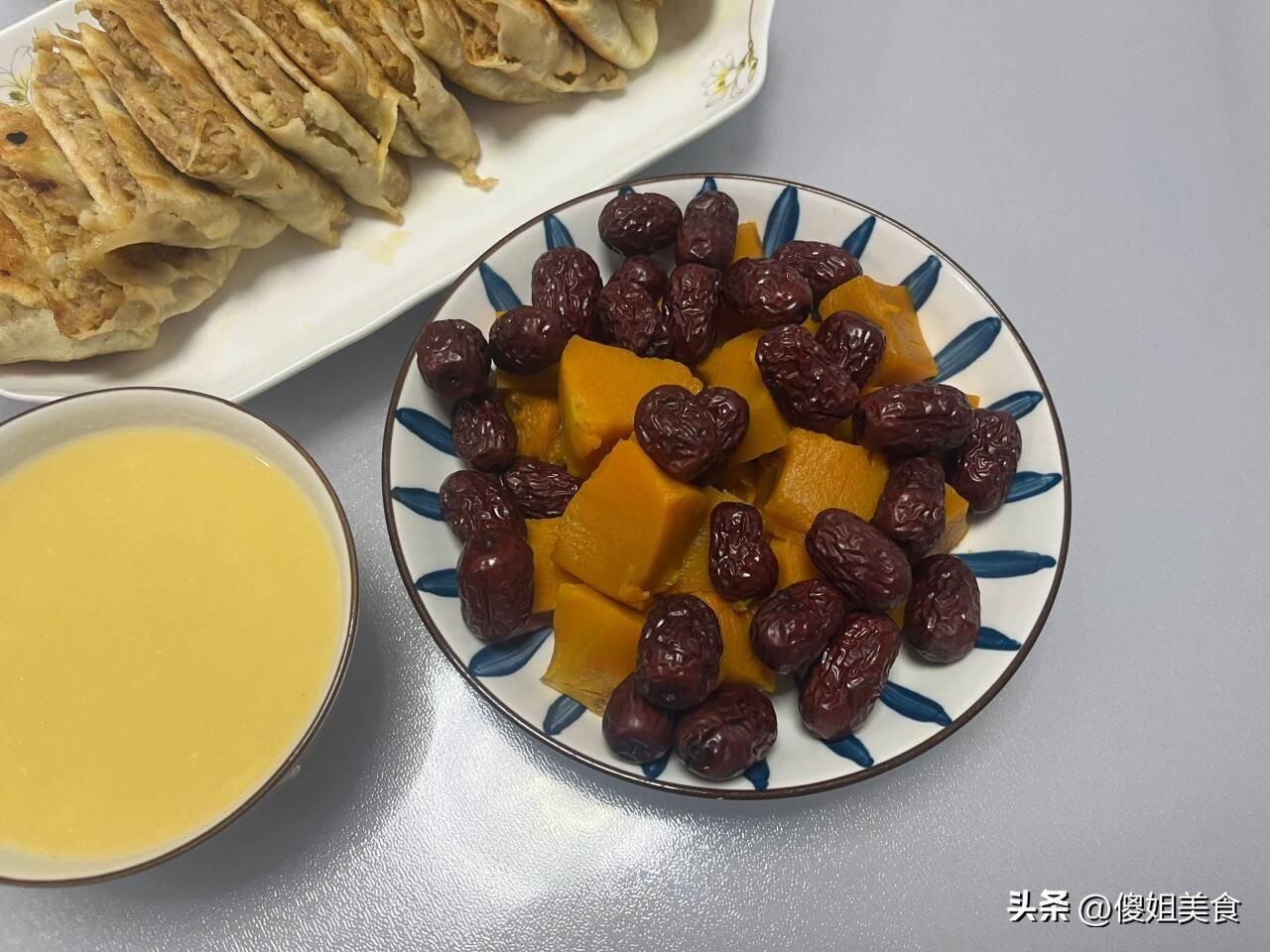 婆婆平時在家閒着沒事就在牆頭邊上種些亂七八糟的蔬菜,像南瓜就是一種,婆婆說今年南瓜結了好多,正好我回去的時候給我帶些。早上煮玉米粥的時候順便蒸了一盤南瓜、紅棗,南瓜軟綿香甜,紅棗也賊甜,紅棗也是自家棗樹結的。好久沒喫到這麼舒服的早餐了,這會終於喫到了,還都是無公害,自己家種的,是不是羨慕我掉在“福”窩裏了,哈哈。