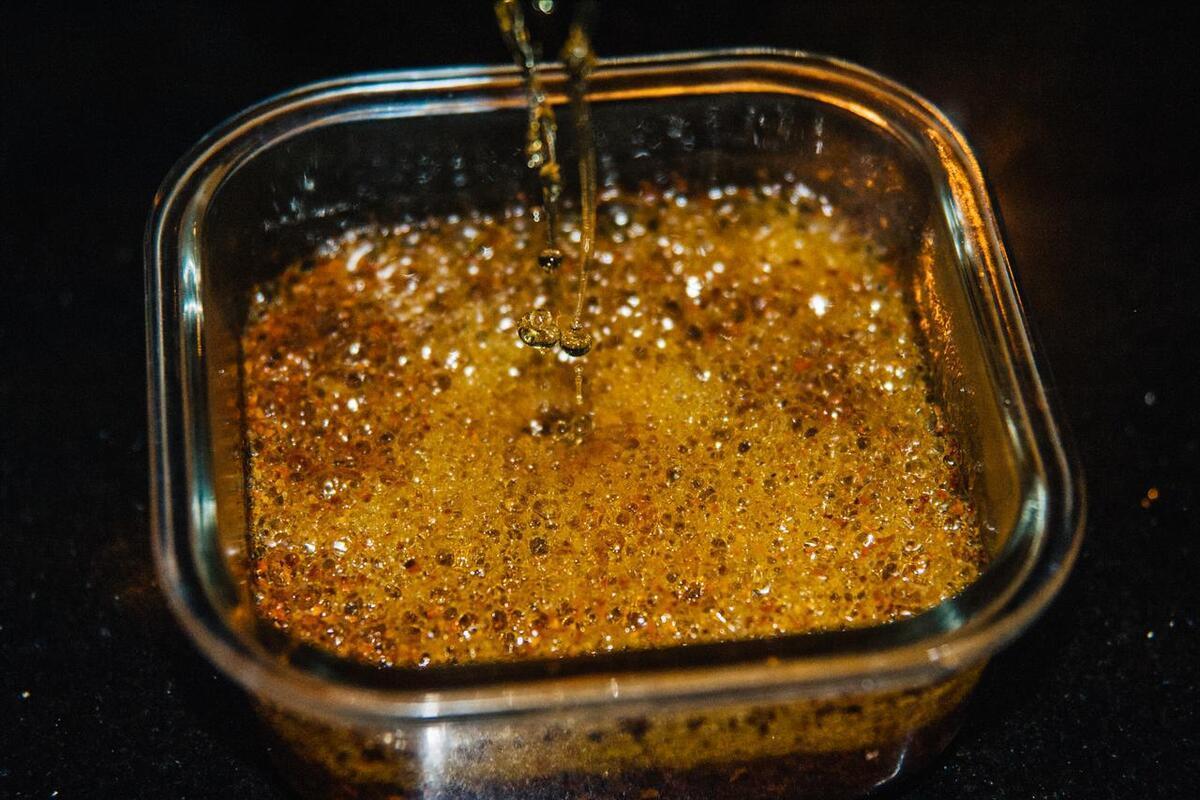 5、這樣炸出來的辣椒油特別容易炸糊,所以喫起來就感覺發苦,這裏咱們看看大廚分享的“重要3步”。首先,關火以後要靜置15秒鐘,不然溫度太高炸出來就會糊,15秒鐘後第一次將熱油澆進去,澆入1/3即可,這是第1步。