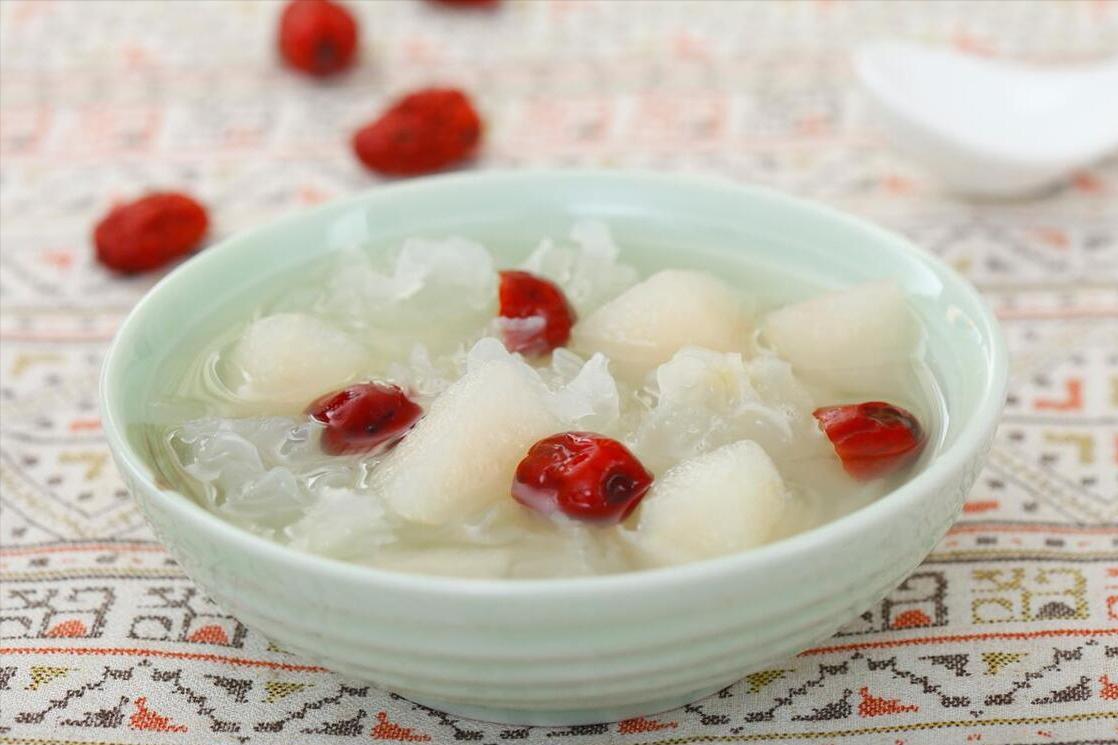 紅棗、枸杞洗淨,馬蹄去皮以後切成小塊,桂圓剝出來備用,隨後準備一口鍋,把紅棗、馬蹄、桂圓一起加進去,添上清水開始煮,大火燒開後,小火繼續煮上半個小時左右,最後放上枸杞和冰糖,稍微攪拌一下,就可以盛出來開喝了。