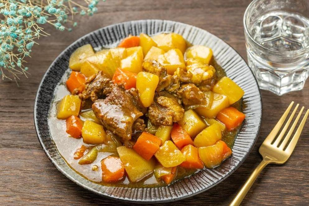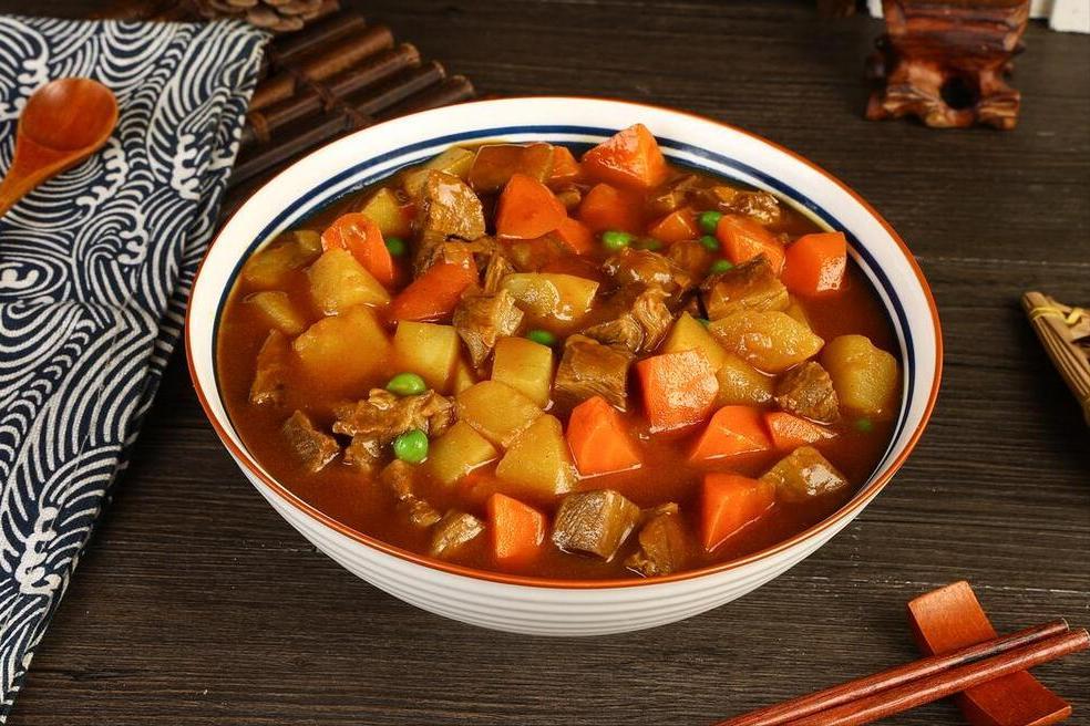 2、鍋內倒油,下入牛肉翻炒片刻,接着下入蔥薑蒜、大料、香葉、桂皮炒香,然後再用生抽、蠔油、老抽、料酒調味,添上沒過牛肉的開水燉50分鐘,然後下入土豆和胡蘿蔔,接着燉20分鐘,最後加上鹽、味精、白胡椒粉調味,出鍋開喫!