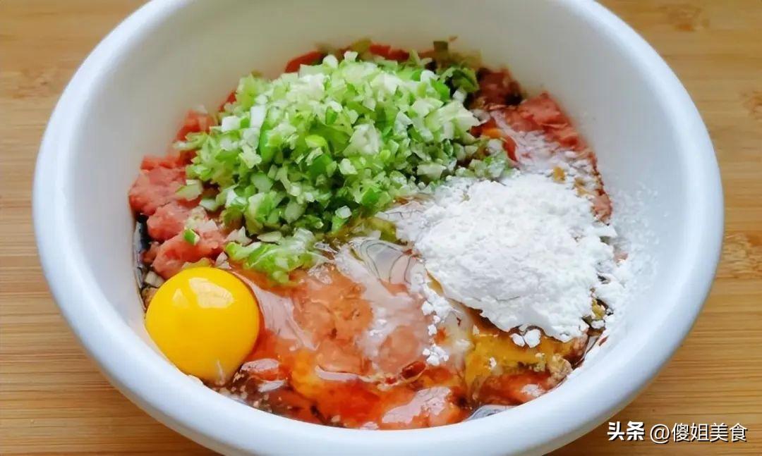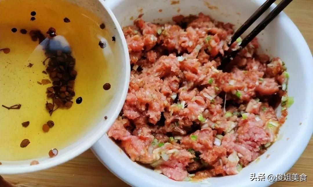 【具體做法】1、將牛肉剁碎,加入蔥末和薑末,少量多次地倒入花椒水,可以很好地去腥,沿着一個方向攪打,讓肉餡吸收水分變得粘稠。