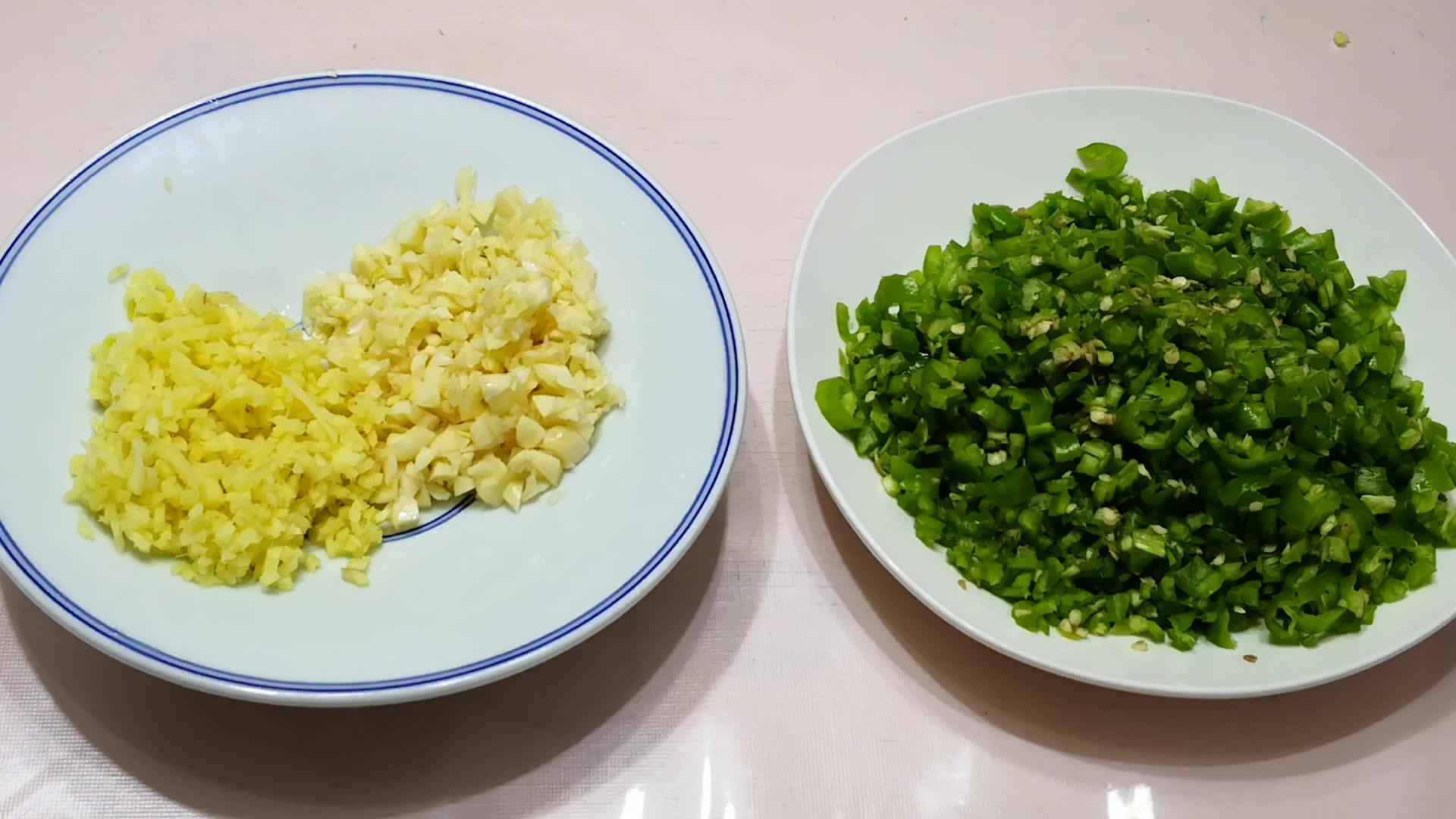 3、蒸豆子的空檔我們準備輔料:辣椒的選擇也至關重要。新鮮的青辣椒,色澤翠綠,辣味十足,爲這道醬料注入了靈魂。把辣椒切成小段,準備與黃豆共舞;再準備一些大蒜,去掉蒜皮後剁成蒜末;蔥剁成蔥花;姜剁成薑末。