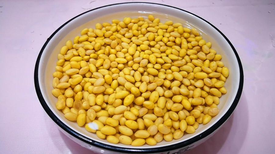 1、話說黃豆也有大小之分,所以挑選黃豆並不是越大越好,而是要看飽滿度,挑選顆粒飽滿,色澤金黃的黃豆,另外,蟲眼和癟豆子也要挑選出來,然後多衝洗幾遍,再泡它四個小時,泡豆的目的是把豆子泡得得胖胖地、鼓鼓地,這樣煮的時候容易熟、口感好。