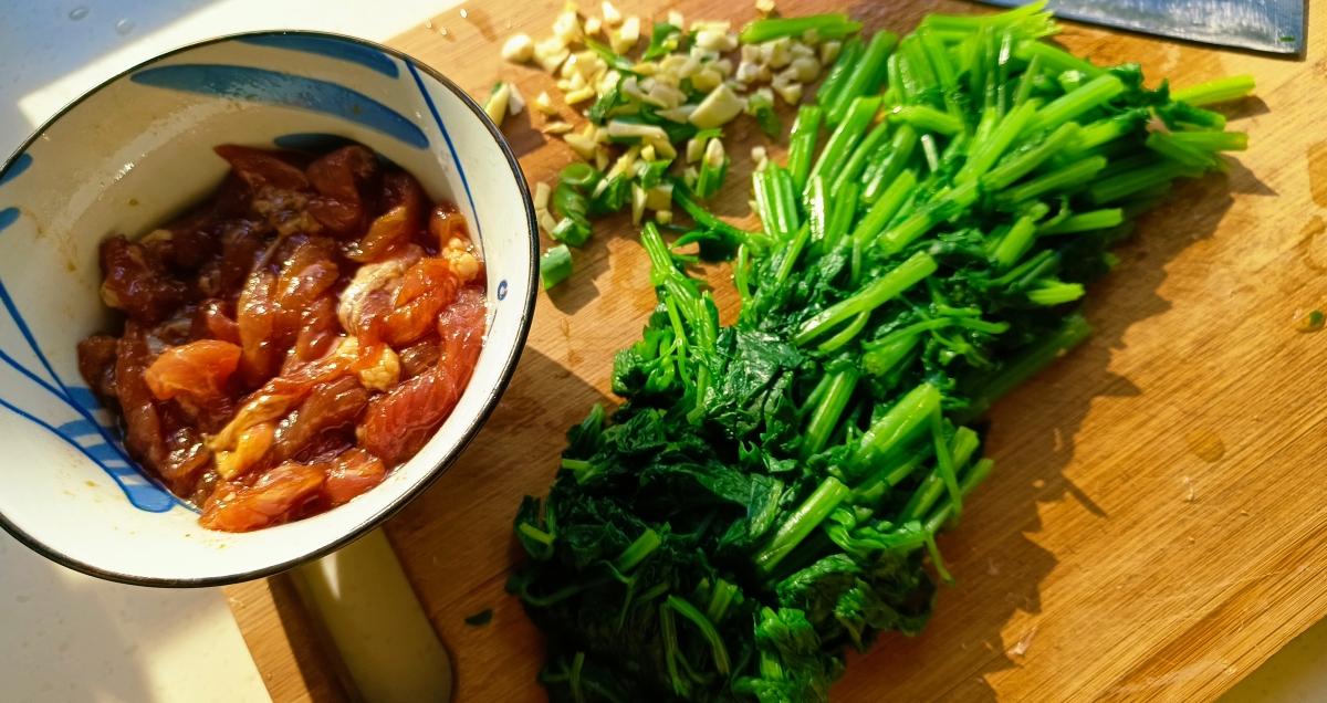 首先,準備適量新鮮的豬肉切成肉絲或肉片,豬肉最好選用裏脊肉或者五花肉,又嫩又香。切好後放入碗中,加入適量的生抽、料酒、澱粉和食用油,攪拌均勻後醃製備用。