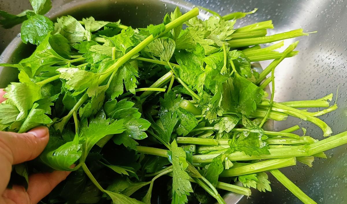 再準備一把芹菜,我炒的是這種特鮮嫩的小細芹菜,因爲它的葉子也特別新鮮,所以不需要摘掉。
